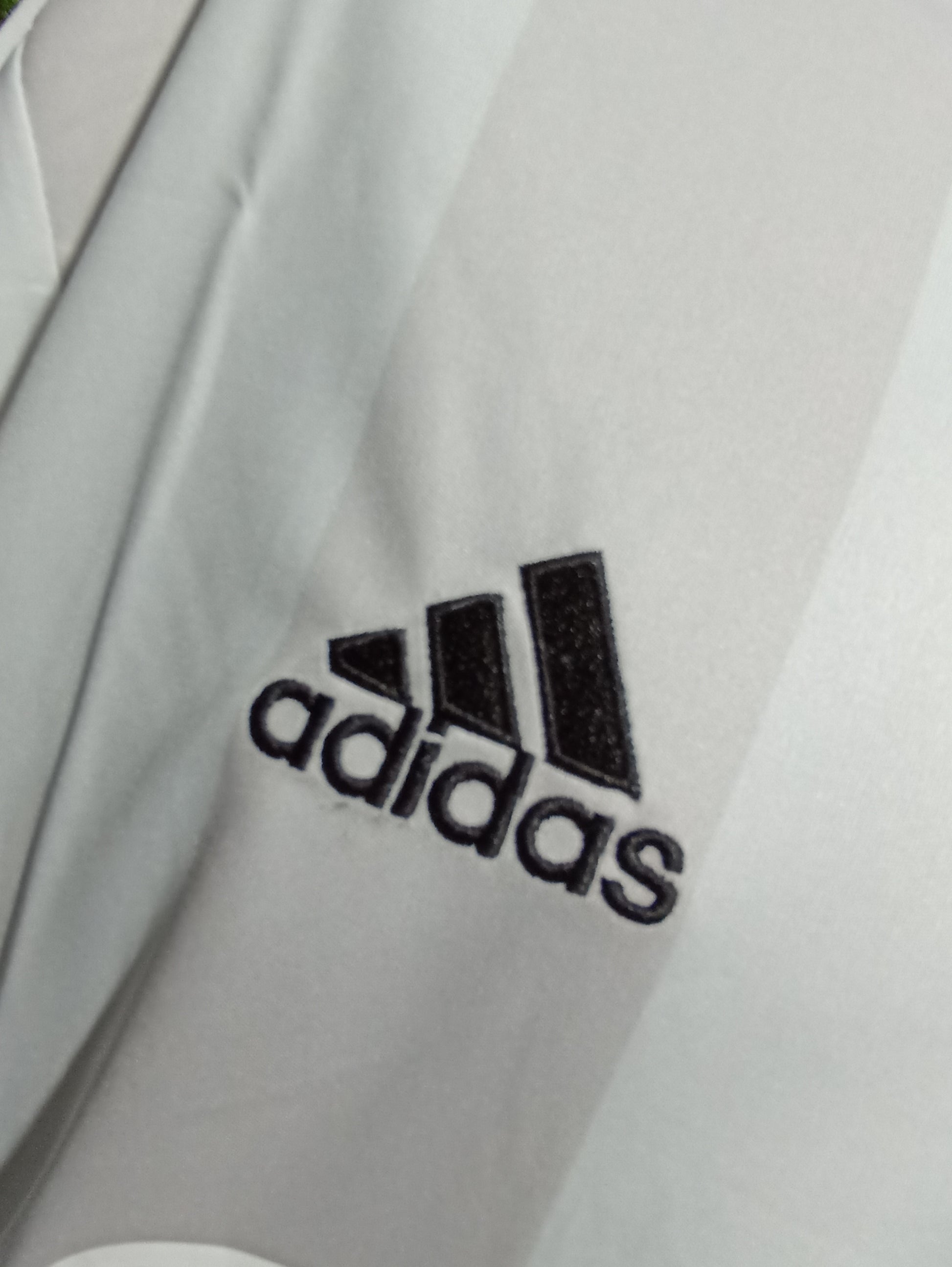 La camiseta de fútbol visitante Adidas Atlético Mineiro 2022-2023 presenta rayas verticales en blanco y gris claro. Adidas utiliza un cuello en V blanco.