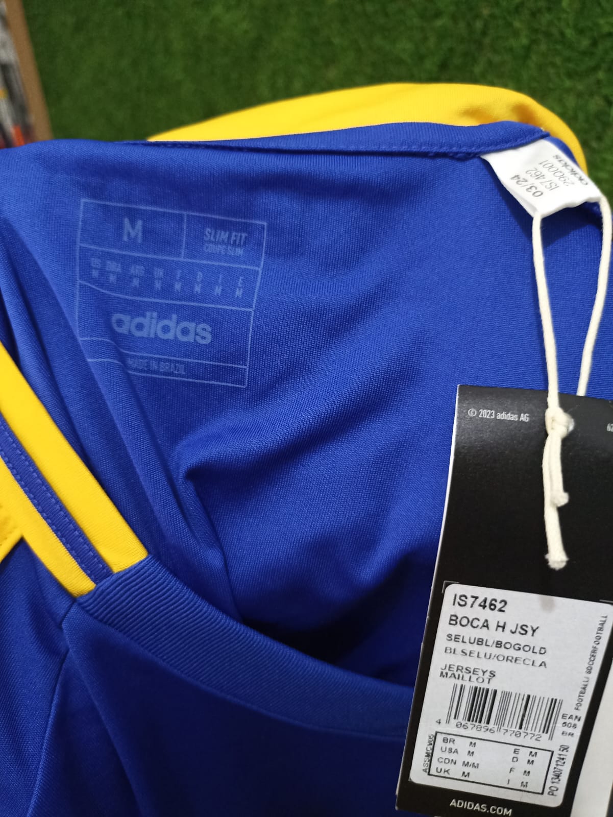 Prepárate para la temporada 24/25 con el estilo de Boca Juniors. Este jersey adidas del uniforme de local presenta la famosa franja en contraste en la parte frontal que distingue a los Xeneizes. Los detalles con forma de flecha invertida son un guiño a los trenes de mercancías que rodean el estadio de La Bombonera. La tecnología transpirable AEROREADY mantiene la piel seca y te permite moverte con total libertad dentro y fuera del terreno de juego. Este producto está hecho con materiales 100 % reciclados. Utilizando materiales reciclados disminuimos los residuos, nuestra dependencia de los recursos finitos y la huella que generan los productos que fabricamos.