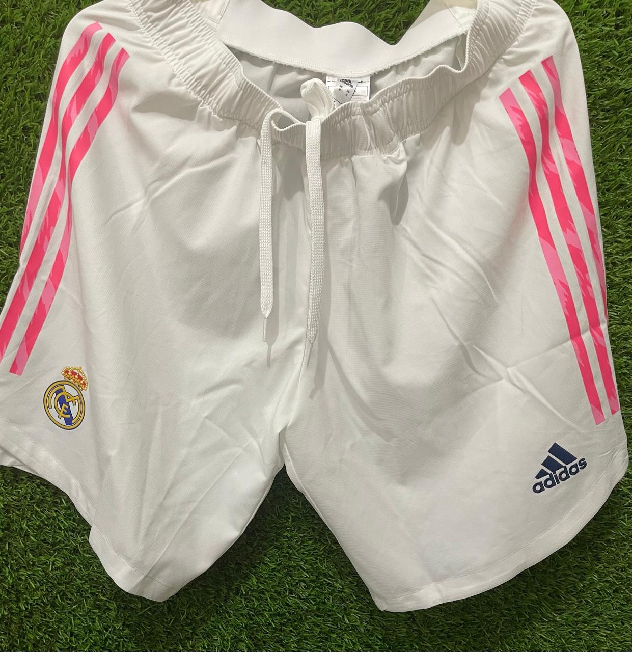 Este pantalón corto es el mismo que utilizan los jugadores del Real Madrid en sus partidos como local durante la temporada 2020 - 2021